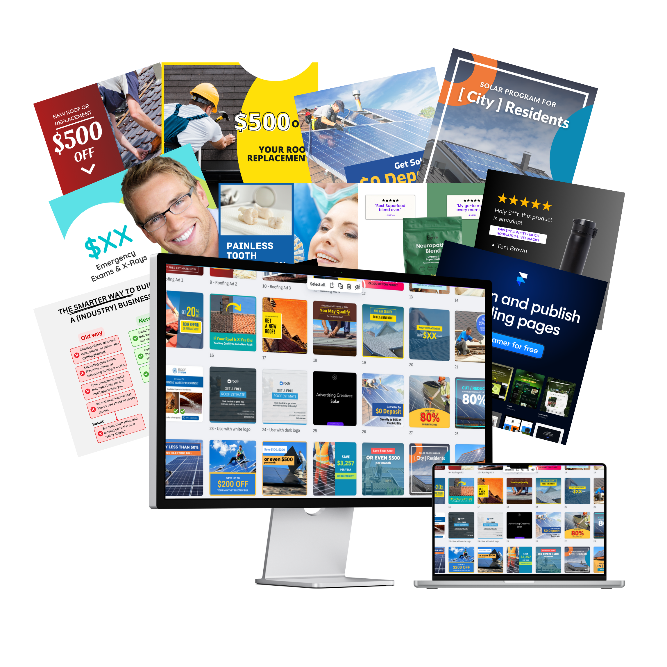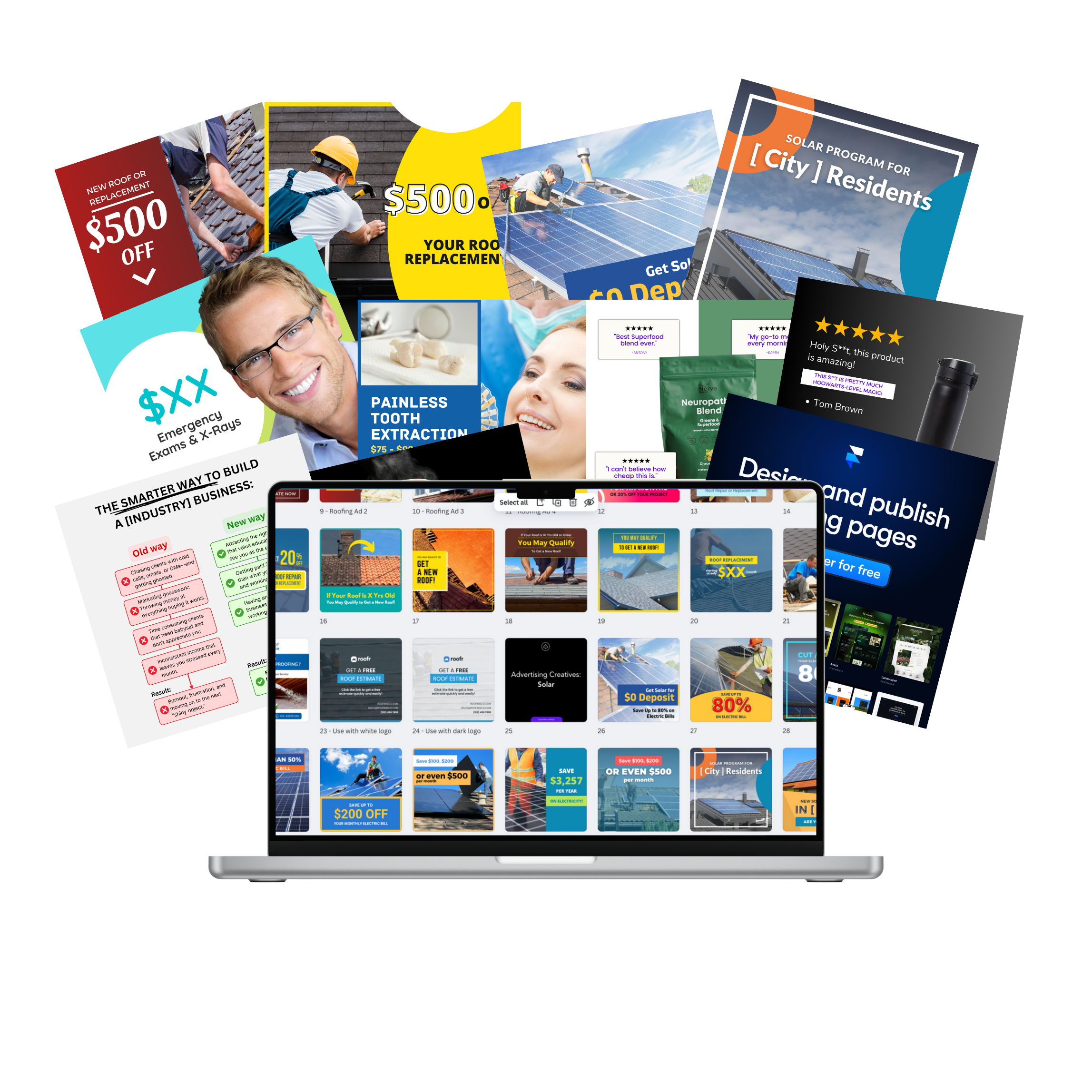Yes! We continuously improve and add new templates based on the latest trends and platform guidelines, ensuring your ads, emails and langing pages are always fresh and relevant.